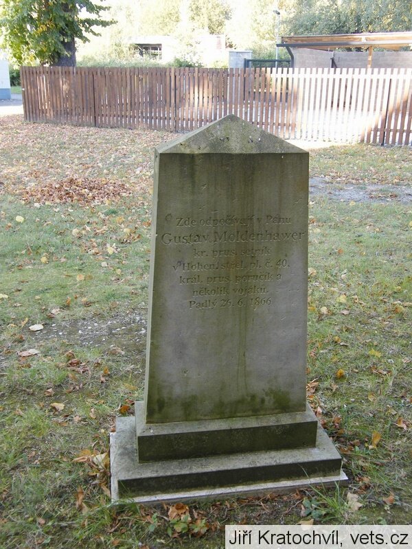 Moldenhauer Gustav: Hauptm. und Comp.-Chef, Hohenzollernsches Füsilier-Regiment Nr. 40, 2. Komp. Příslušný do Ehrenbreitstein, Kreis Koblenz. Zabit průstřelem hrudi. (zdroj: Verlustlisten der Preußischen Armee 1866)