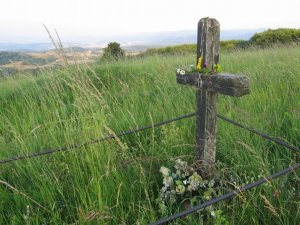 Místní obyvatelé tvrdí, že osamělý rumunský voják - v čase, kdy rumunské jednotky v oblasti Zvolena se už obrátili proti Němcům - se dostal do ruky Němcům a při sebeobraně podlehl jejich přesile. Hrob do jisté míry udržují místní obyvatelé - i když nijak zvlášť, jak vidno z obrázku - ale opatřili ho před několika léty železným oplocením a opakovaně opravují dřevěný kříž. Není zádný nápis ani jiné znamení, jež by umožňovalo identifikaci padlého.