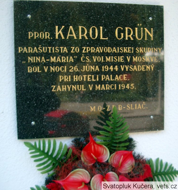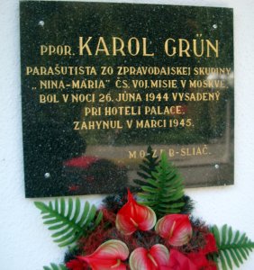 Umístění: Sliač, Kúpelná, lázeňská budova PALACE, vpravo ve vchodu do budovyPPOR. KAROL GRÜN