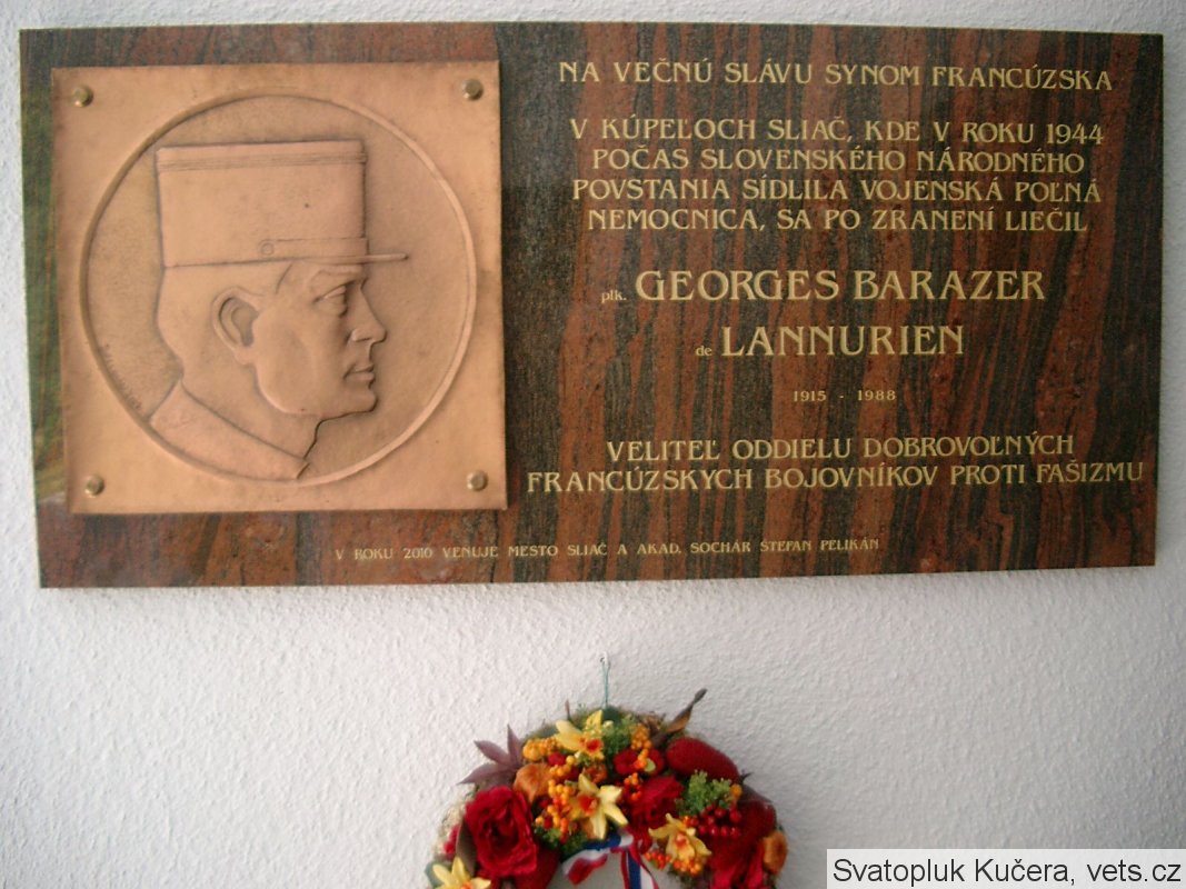 Umístění: Sliač, Kúpelná, lázeňská budova PALACE, vlevo ve vchodu do budovyNA VEČNÚ SLÁVU SYNOM FRANCÚZSKA