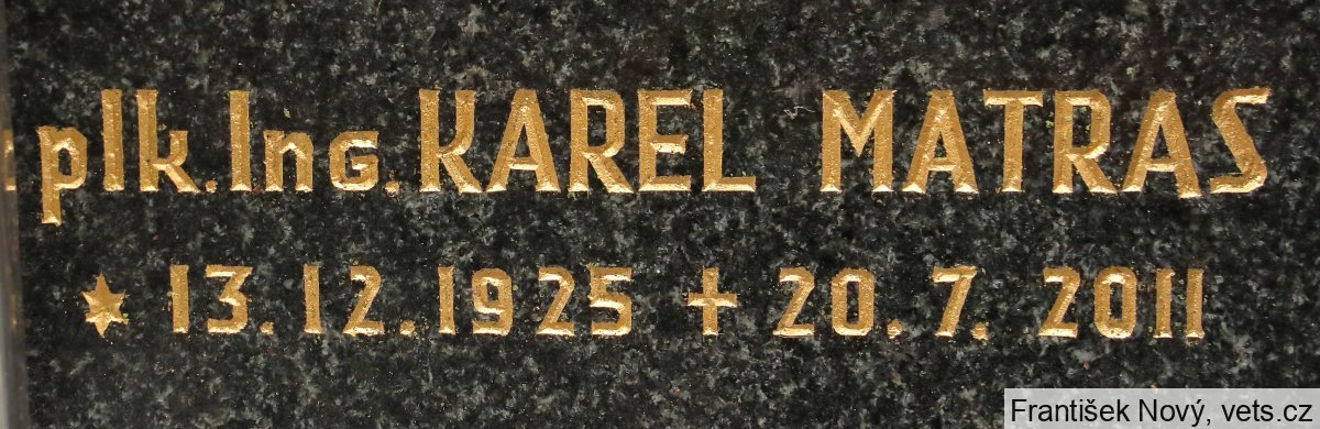 Umístění: Praha 6, Evropská 244/202, hřbitov Vokovice-Liboc, oddíl 8plk. Ing. KAREL MATRAS