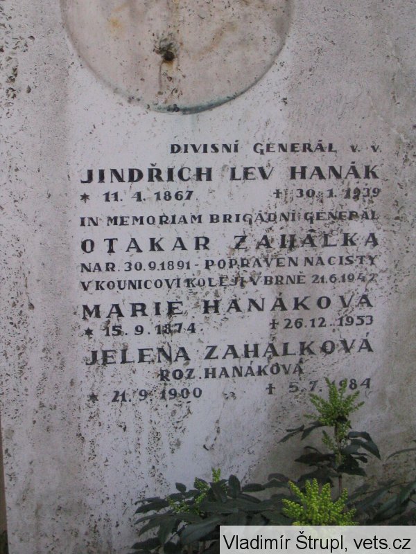 Hrob Jindřich Lev Hanák, Jaromír Zahálka a kenotaf Otakar Zahálka