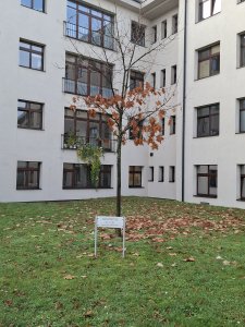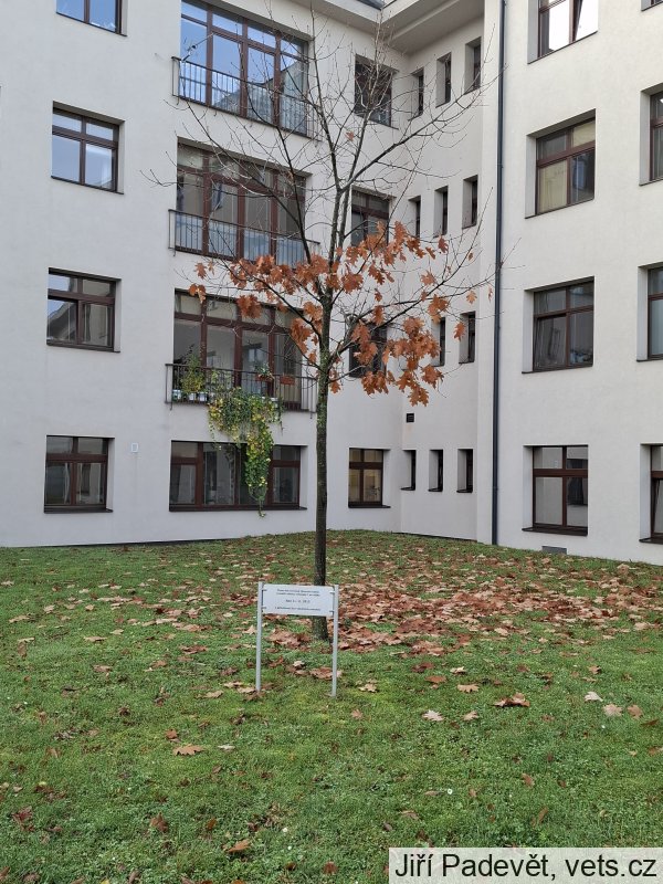 Umístění: Praha 6, U Vojenské nemocnice, v areálu u pavilonu BTento dub červený (Quercus rubra)