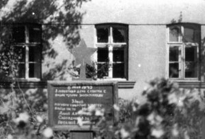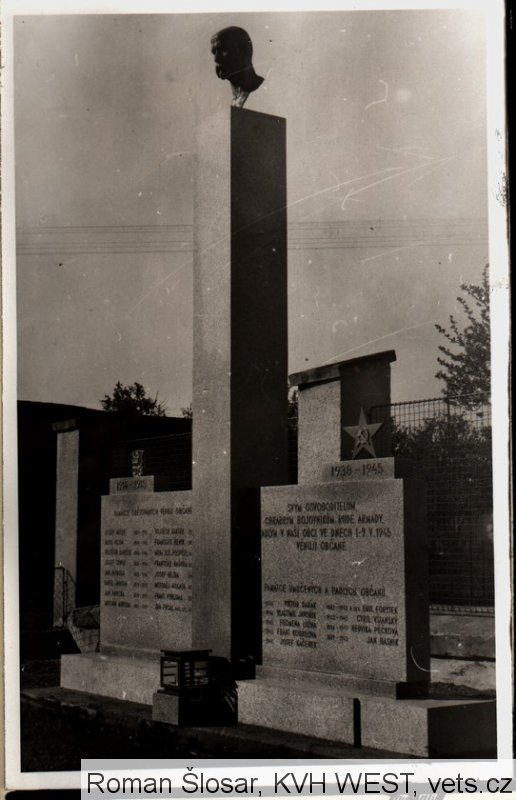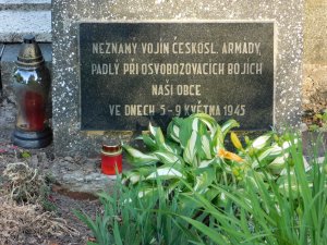 SVÝM OSVOBODITELŮM CHRABRÝM BOJOVNÍKŮM RUDÉ ARMÁDY PADLÝM V NAŠÍ OBCI VE DNECH 1-9.5.1945 VĚNUJÍ OBČANÉ