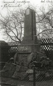 V době nacistické okupace byl pomník odstraněn a zakopán na zahradě místního kronikáře, kde byl při závěrečných bojích 2. světové války zničen.Zachovala se jen reliéfní deska, která je zazděná ve zdi budovy mateřské školy, za současným pomníkem Obětem 1. a 2. světové války.