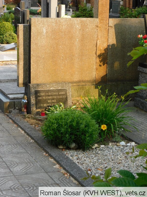 VIKTOR DADÁK 1873-1938, VLASTIMIL JAVOŘÍK 1921-1944, FILOMENA LUŽNÁ 1867-1945, FRANTIŠKA KOUŘILOVÁ 1905-1945, JOSEF KAČEREK 1875-1945, EMIL FORÝTEK R.LEG. 1882-1942, CYRIL VŠIANSKÝ 1902-1945, HEDVIKA PĚČKOVÁ 1886-1945, JAN HASNÍK 1879-1945.