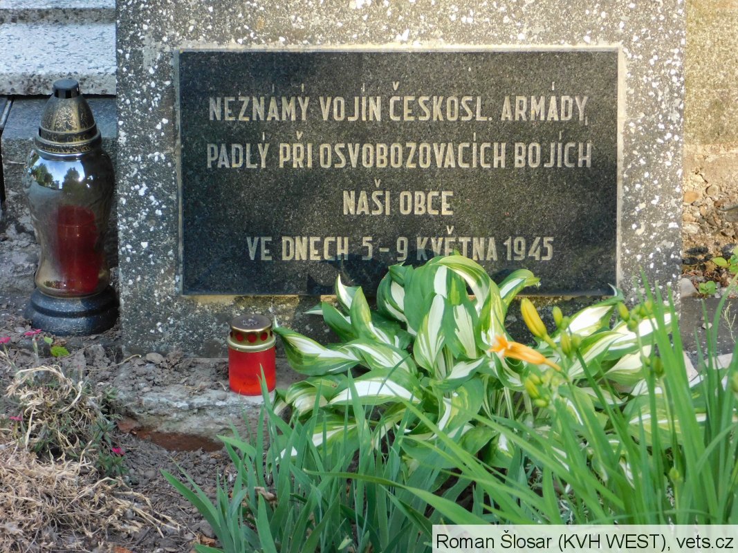 Při osvobozování obce padlo, lépe řečeno je evidováno celkem 16 příslušníků RKKA, z nichž 7 je bezejmených a právě k pomníčku u kříže je uvedeno neznámý tankista, padl 4.5. pochován 6.5.1945 u kříže z roku 1969 u silnice, ale tento údaj je přeškrtnut a opraven na "u kříže z roku 1884 u polní kaple".