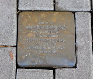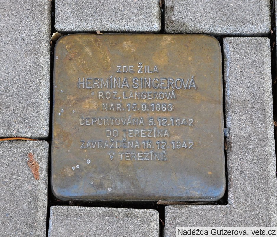 Hermína Langerová se narodila v Ransku (okr. Hravlíčkův Brod), v roce 1898 se provdala za Josefa Singera, pozdějšího poličského rabína (od roku 1905). Nejprve žili v ulici Masarykova 189, později v ulici Nádražní 348. Po smrti manžela (1919) se živila jako učitelka němčiny. Deportována 5.12. 1942, během cesty onemocněla zápalem plic a brzy po příjezdu do Terezína zemřela. Kámen byl umístěn 20.3. 2025 v rámci happeningu "Pamatuj", který pořádá místní gymnázium.