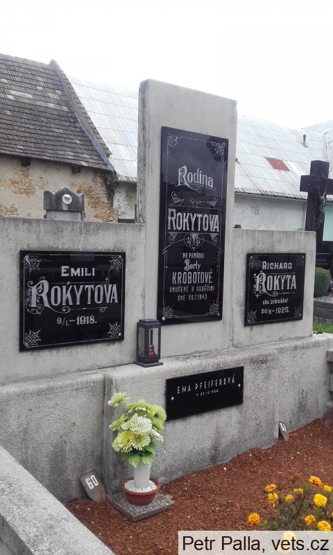 Na městském hřbitově v Jevíčku je na pomníku hrobu rodiny Rokytovy (hrob č. 58-59) pamětní deska s nápisem: „Rodina Rokytova