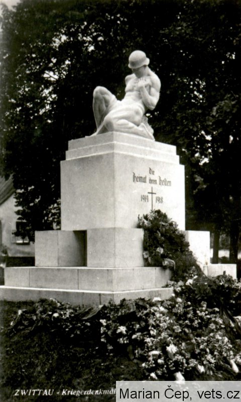 Socha s názvem Raněný vojín byla dílem sochaře Paula Stadlera. Jednalo se o pomník obětem I. světové války.