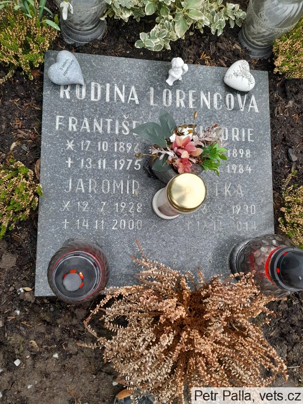 František Lorenc, nar. 17.10.1896 v Poličce, okr. Svitavy, dělník, během 1. světové války vojín 98. pěšího pluku R-U armády, zajat na Piavě, italský legionář u 35. pěšího pluku, 20.12.1920 demobilizován, povolání v letech 1918-1938 hasič ve voj. muniční továrně Polička- Bořiny, datum úmrtí 13.11.1975