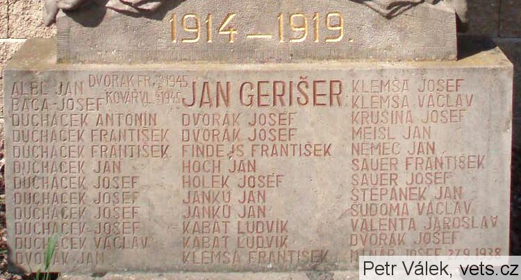JAN GERIŠER, ALBL JAN, BACA JOSEF, DUCHÁČEK ANTONÍN, DUCHÁČEK FRANTIŠEK, DUCHÁČEK FRANTIŠEK, DUCHÁČEK JAN, DUCHÁČEK JOSEF, DUCHÁČEK JOSEF, DUCHÁČEK JOSEF, DUCHÁČEK JOSEF, DUCHÁČEK VÁCLAV, DVOŘÁK JAN, DVOŘÁK JOSEF, DVOŘÁK JOSEF, FINDEJS FRANTIŠEK, HOCH JAN, HOLEK JOSEF, JANKŮ JAN, KABÁT LUDVÍK, KABÁT LUDVÍK, KLEMŠA FRANTIŠEK, KLEMŠA JOSEF, KLEMŠA VÁCLAV, KRUŠINA JOSEF, MEISL JAN, NĚMEC JAN, SAUER FRANTIŠEK, SAUER JOSEF, ŠTĚPÁNEK JAN, ŠUDOMA VÁCLAV, VALENTA JAROSLAV, DVOŘÁK JOSEF