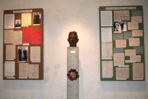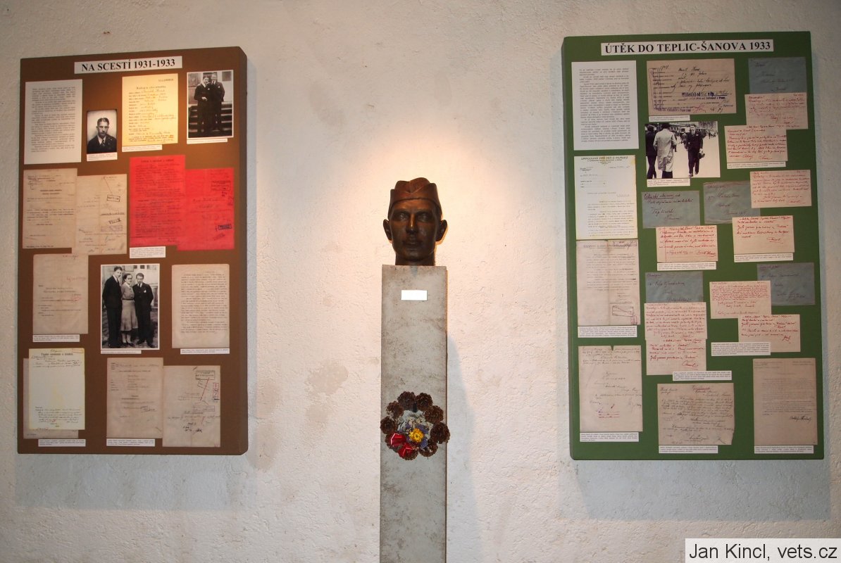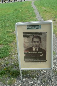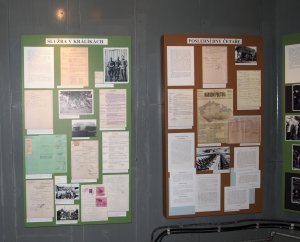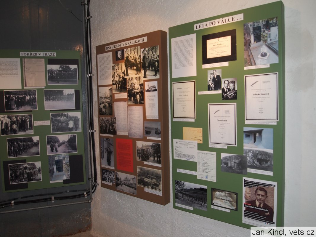 Na vývěskách jsou originální dokumenty k životu hrdiny, zástupce velitele objektu, čet. Arnošta Hrada