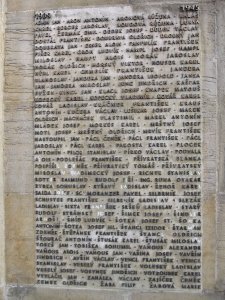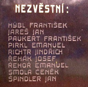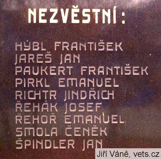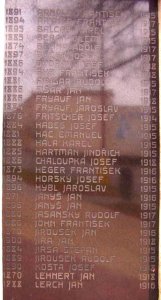 ARNOLD FRANTIŠEK 1891-1915, ARTNER FRANTIŠEK 1894-1917, BALCAR KAREL 1895-1915, BERAN VILÉM 1885-1915, BĚLINA ADOLF 1874-1917, BUČEK JOSEF 1897-1917, DVOŘÁK JOSEF 1886-1918, EKR FRANTIŠEK 1894-1918, FIBIGAR RUDOLF 1881-1915, FIŠAR JAN 1886-1917, FRYAUF JAN 1886-1918, FRYAUF JAROSLAV 1884-1915, FRITSCHER JOSEF 1876-1914, HABEŠ JOSEF 1884-1915, HAC EMANUEL 1881-1915, HÁLA KAREL 1888-1915, HARTMAN JINDŘICH 1885-1915, CHALOUPKA JOSEF 1886-1918, HEGER FRANTIŠEK 1873-1916, HORSKÝ JOSEF 1894-1916, HÝBL JAROSLAV 1896-1915, JANYŠ JAN 1871-1916, JANYŠ JAN 1896-1915, JASANSKÝ RUDOLF 1880-1917, JOHN FRANTIŠEK 1880-1917, JIROUŠEK JAN 1870-1916, JÍRA JAN 1900-1918, JIRSA ŠTĚPÁN 1884-1915, JIROUŠEK RUDOLF 1889-1915, KOŠTA JOSEF 1890-1918, LEHNERT JAN 1870-1918, LERCH JAN 1888-1916