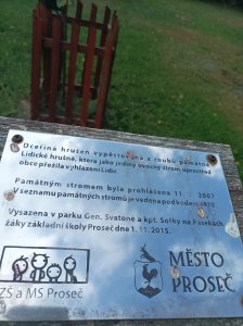 Památná hrušeň se nachází vpravo od Pomníku Obětem 2. světové války.