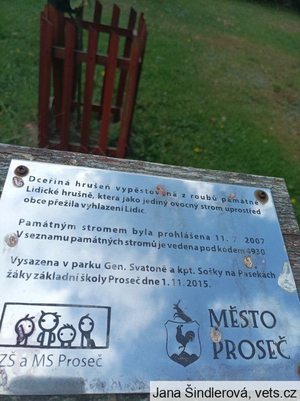 Lidické hrušně, která jako jediný ovocný strom uprostřed