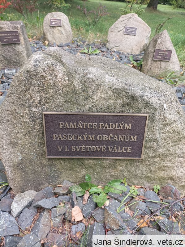 Umístění: Paseky, vpravo u silnice č. 357, park Gen. Svatoně a kpt. Sošky, u autobusové zastávky, vchod označen tabulí