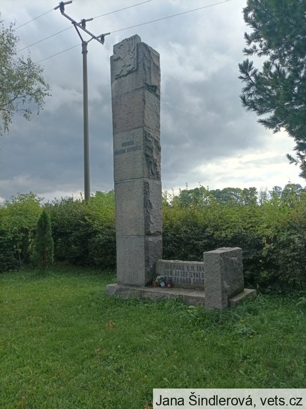 Autorem osmimetrového kamenného pomníku je arch. Jaroslav Mošek, odhalen byl 1.11.1945, rok po smrti partyzánů. V základech pomníku jsou uloženy urny s jejich popelem.