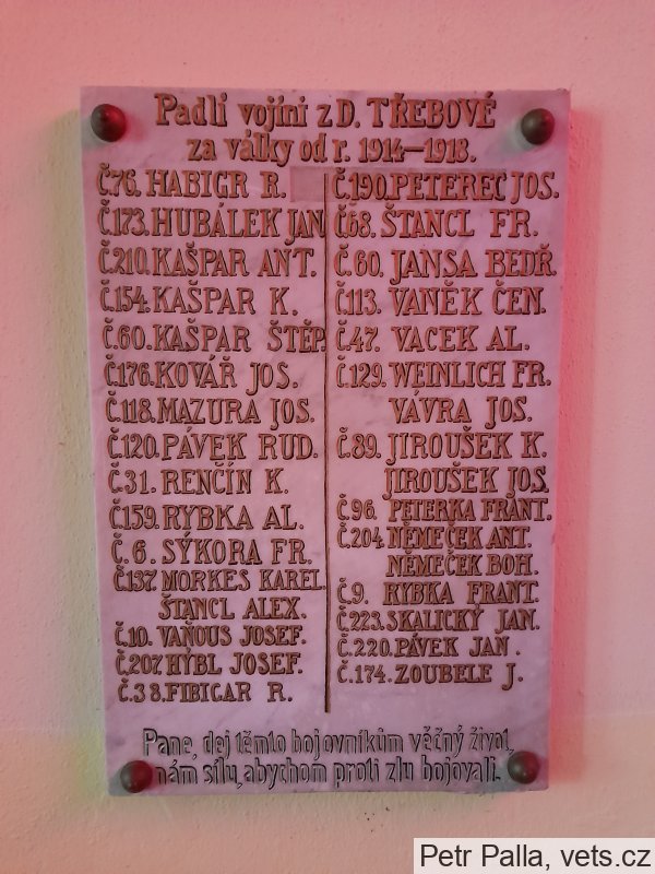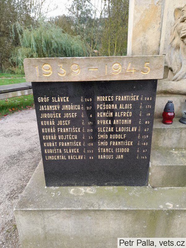 FIBIGAR RUDOLF, FIŠAR JAN, HABIGR RUDOLF, HUBÁLEK JAN, HÝBL JOSEF, JANSA BEDŘICH, JIROUŠEK KAREL, JIROUŠEK JOSEF, KAŠPAR ANTONÍN, KAŠPAR KAREL, KAŠPAR ŠTĚPÁN, KOVÁŘ JOSEF, MAZURA JOSEF, MORKES KAREL, NĚMEČEK ANTONÍN, NĚMEČEK BOHUSLAV, NOVÁK RUDOLF, PAVĚK JAN, PETERKA FRANTIŠEK, PETEREC JOSEF, PIRKL JOSEF, RENČÍN KAREL, RYBKA ALOIS, SKALICKÝ JAN, SÝKORA FRANTIŠEK, ŠTANCL FRANTIŠEK, ŠTANCL ALEXANDR, VACEK JOSEF, VAŇOUS JOSEF, VAŇOUS JAN, VANĚK ČENĚK, VÁVRA JOSEF, WEINLICH FRANTIŠEK, ZOUBELE JOSEF
