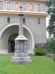 Umístění: Tošovice, před vchodem do kostelaNápis: