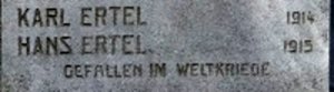 Ertel Karl: *1889, příslušný Odrau (Odry). EinjFreiwKorp., k. k. LIR. Nr.15, 2. Komp. +23.8.1914, padl. V jiném dokumentu je číslo regimentu 16.