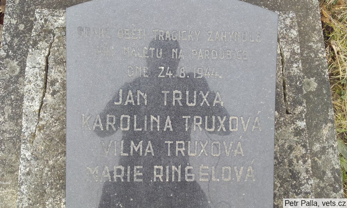 během druhé světové války byly na Pardubice uskutečněny tři významné spojenecké nálety, všechny tři se odehrály v roce 1944, jejich hlavním cílem byla rafinerie Fantových závodů (dnes PARAMO) stojící na západním okraji města a také nedaleké vojenské letiště, od roku 1940 školící středisko Luftwaffe, těžce zasaženo bylo i nádraží, nejstarším zahynuvším byl čtyřiaosmdesátiletý Jan Truxa, strojvedoucí státních drah ve výslužbě, který zemřel společně se svojí manželkou