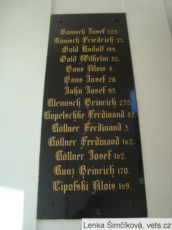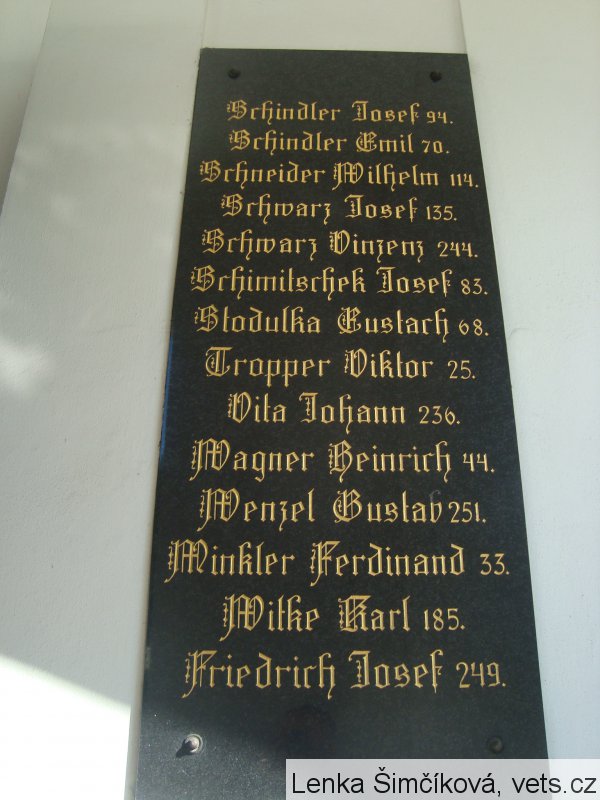 Schimitschek Josef 83. (uvedeno čp. 85, padl v září 1915 u Nida /asi městečko v Litvě/ ve věku 22 let)