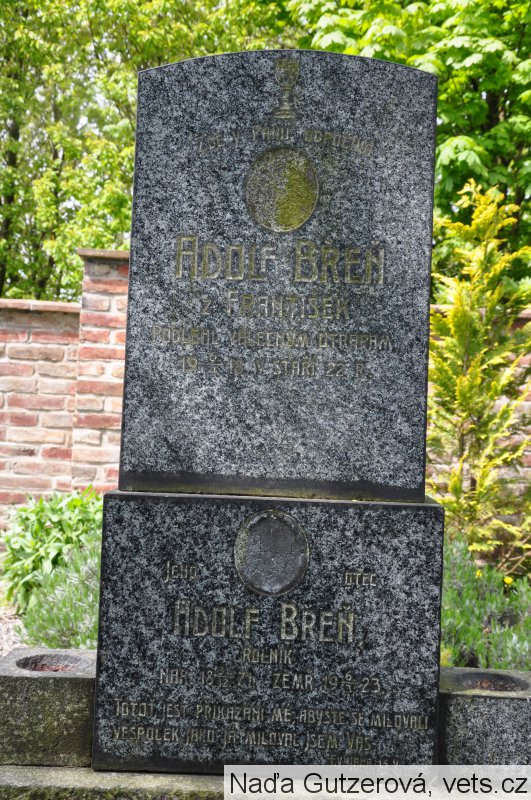 ZDE V PÁNU ODPOČÍVÁ ADOLF BŘEŇ Z FRANTIŠEK PODLEHL VÁLEČNÝM ÚTRAPÁM 19 6/4 18 VE STÁŘÍ 22 R.