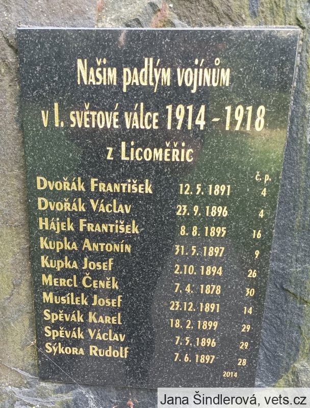 Umístění: Licoměřice, nalevo od pomníku Obětem 2. světové války