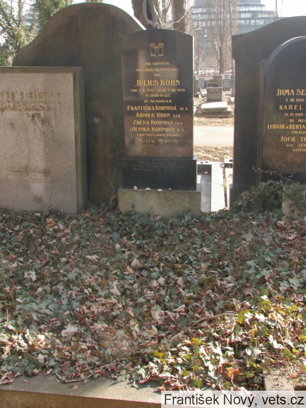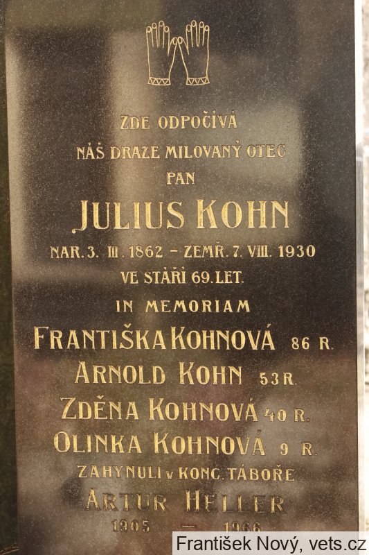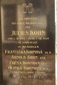 Františka Kohnová, 17.2.1858, Praha XI, 4.9.1942 deportována do Terezína, tam 9.5.1944 zahynula