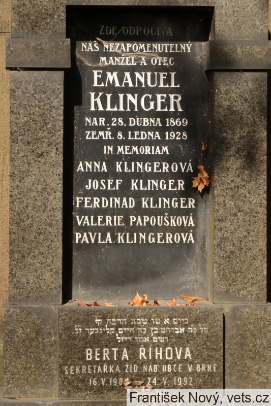 Kenotaf Anna, Josef, Ferdinand a Pavla Klingerovi a Valerie Papoušková