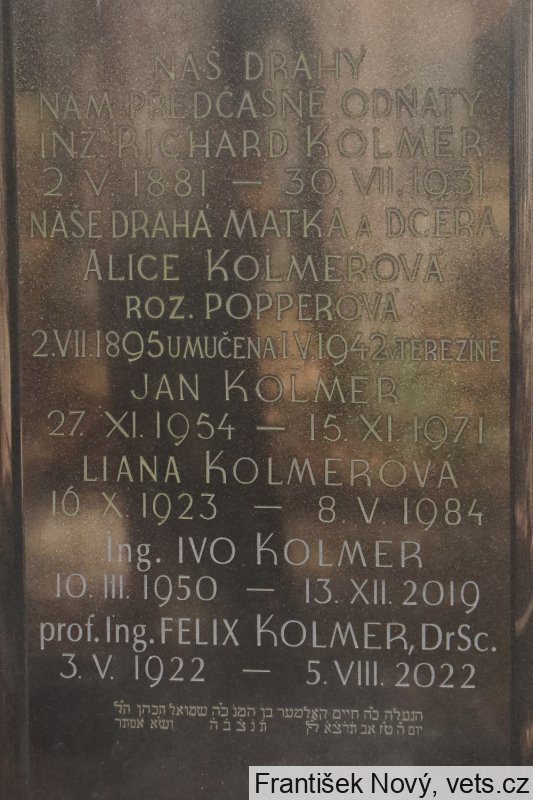 Kenotaf Alice Kolmerová a hrob Richard, Felix a Liana Kolmerovi