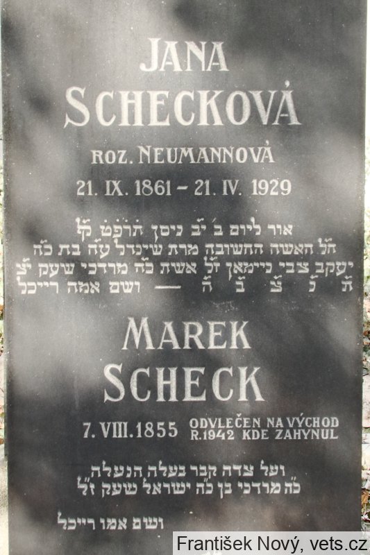 Marek Scheck, 7.8.1855, Praha II, 16.7.1942 deportován do Terezína, 19.10.1942 do Treblinky