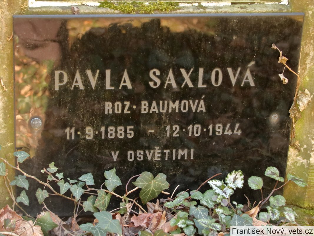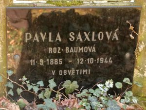 Pavla Saxlová, 11.9.1885, Praha V, 30.11.1941 deportována do Terezína, 9.10 .1944 do Osvětimi