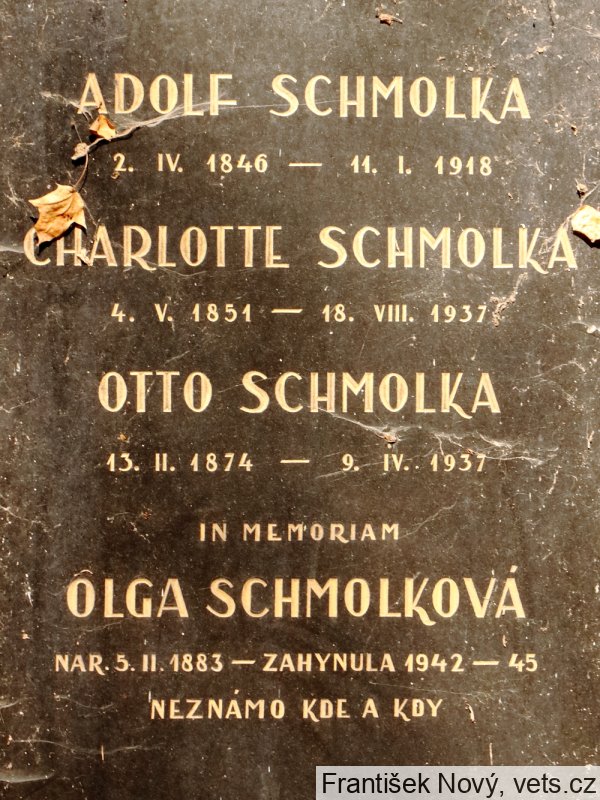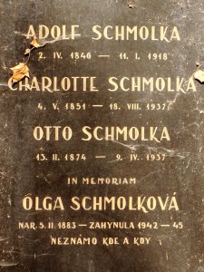 Olga Schmolková, 5.2.1883, Praha XII, 8.2.1942 deportována do Terezína, 3.4.1942 do Zamošče