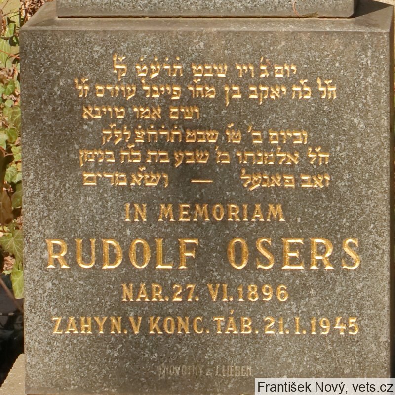 Rudolf Osers, 27.6.1896, Praha I, 20.11.1942 deportován do Terezína, 15.12.1943 do Osvětimi