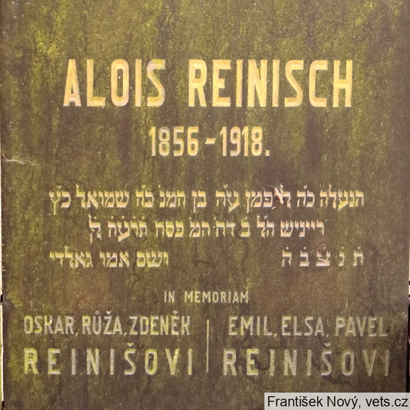 Oskar Reiniš, 9.8.1886, Růžena Reinišová, 12.11.1899 a Zdeněk Reiniš, 21.7.1926, Praha XII, 22.12.1942 deportováni do Terezína, 23.1.1943 do Osvětimi