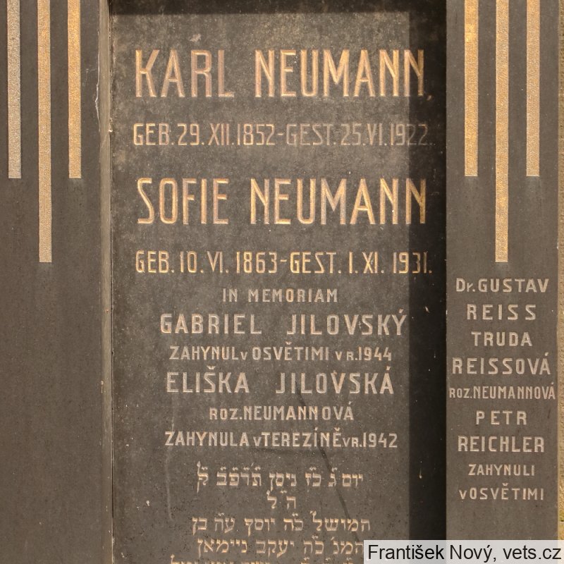 Gustav Reiss,12.8.1885 a Truda Reissová, 15:4.1892, Praha II, 15.5.1942 deportováni do Terezína, 18.5.1944 do Osvětimi