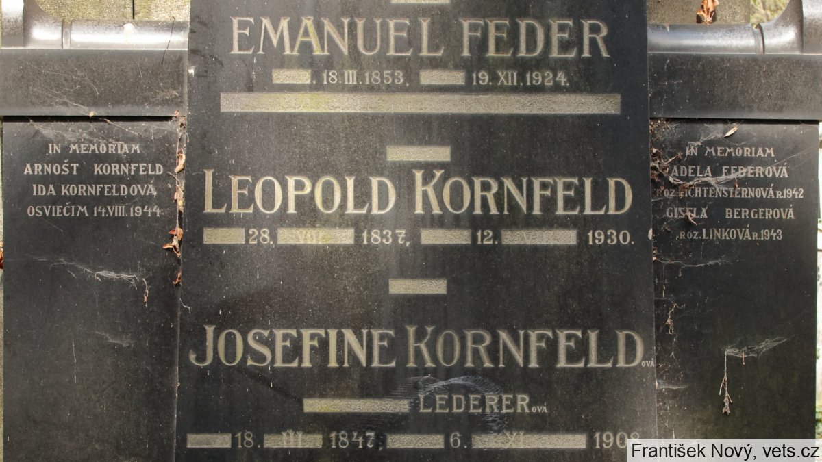 Arnošt Kornfeld, 31.8.1877 a Ida Kornfeldová, 15.11.1888, Praha XI, 21.10.1941 deportováni do Lodže