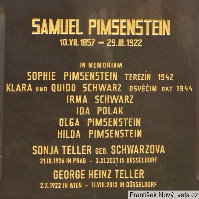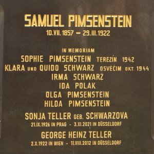 Žofie Pimsensteinová, 8.12.1864, Praha VII, 15.5.1942 deportována do Terezína, ta, zahynula 18.7.1942