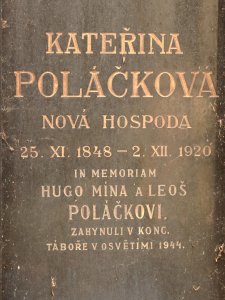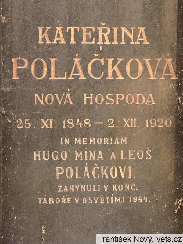 Hugo Poláček, 20.3.1872 a Mína Poláčková, 28.12.1880, Praha XII, 13.7.1942 deportován do Terezína, 15.12.1943 do Osvětimi