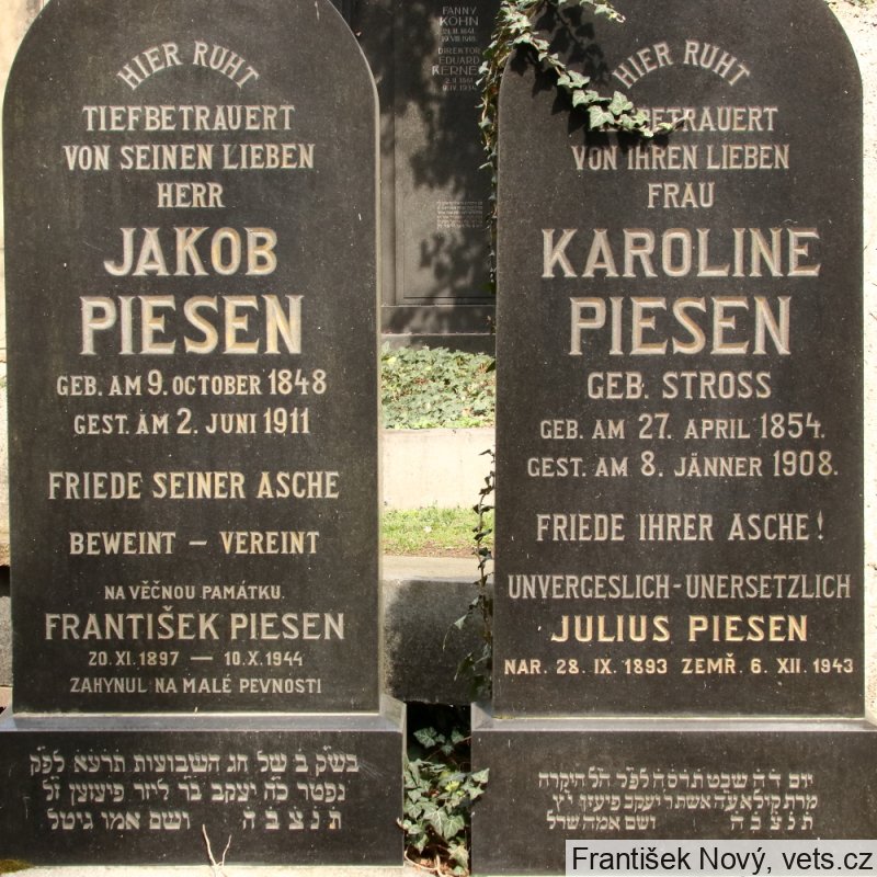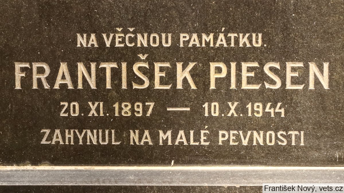 František Piesen, 20.11.1897, 15.8.1944 deportován z Pankráce do Terezína, tam zahynul 10.10.1944