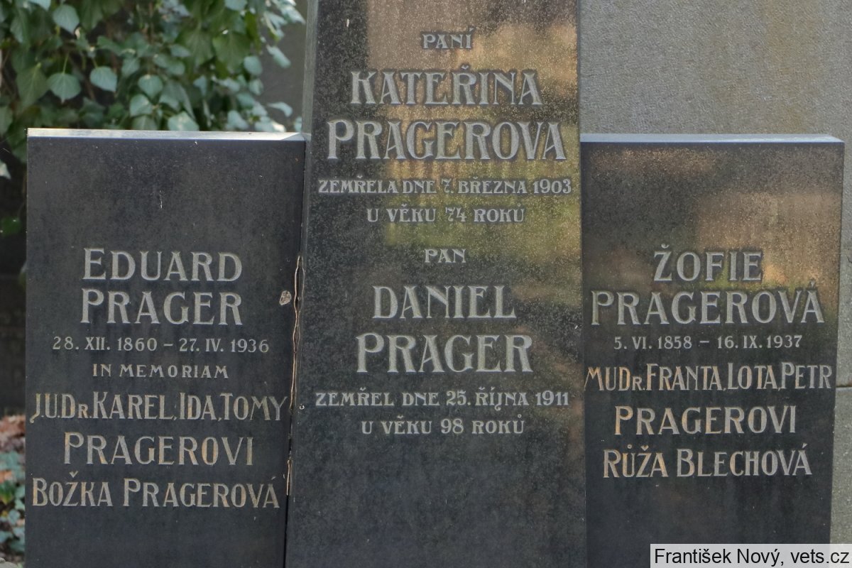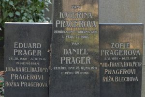 Karel Prager, 18.7.1888, Ida Pragerová, 12.8.1902 a Tomy Prager, 22.4.1928 Praha II, 23.7.1942 deportováni do Terezína, 26.1.1943 do Osvětimi