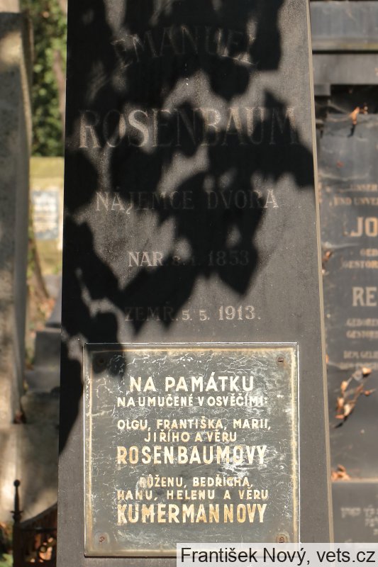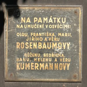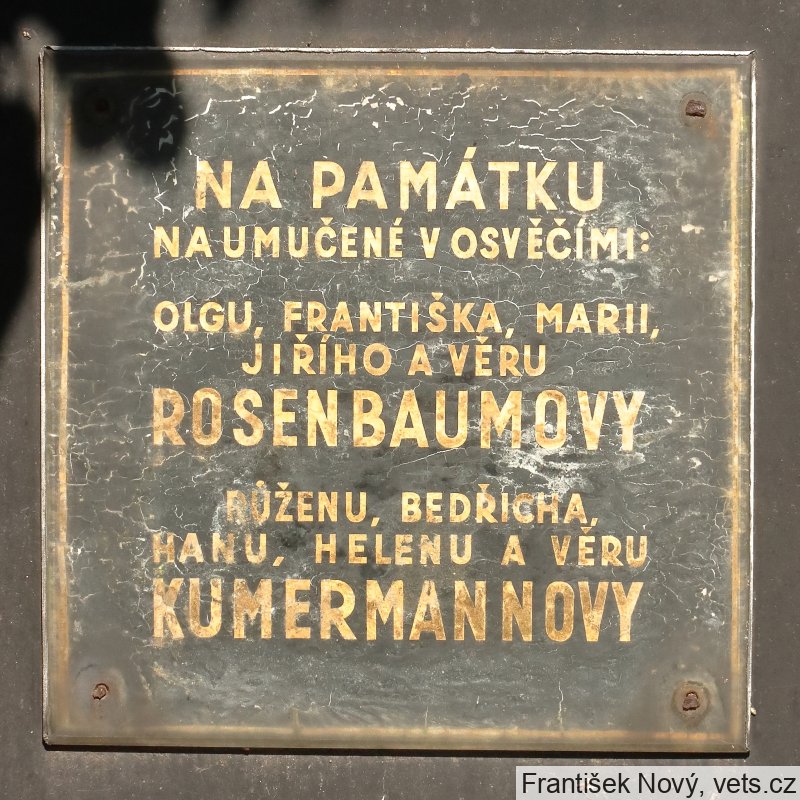 František Rosenbaum, 7.4.1899, Marie Rosenbaumová, 21.8.1908, Jiří Rosenbaum, 16.11.1929 a Věra Rosenbaumová, 7.4.1935, Oltyně, 16.11.1942 deportováni z Tábora do Terezína, 20.1.1943 do Osvětimi