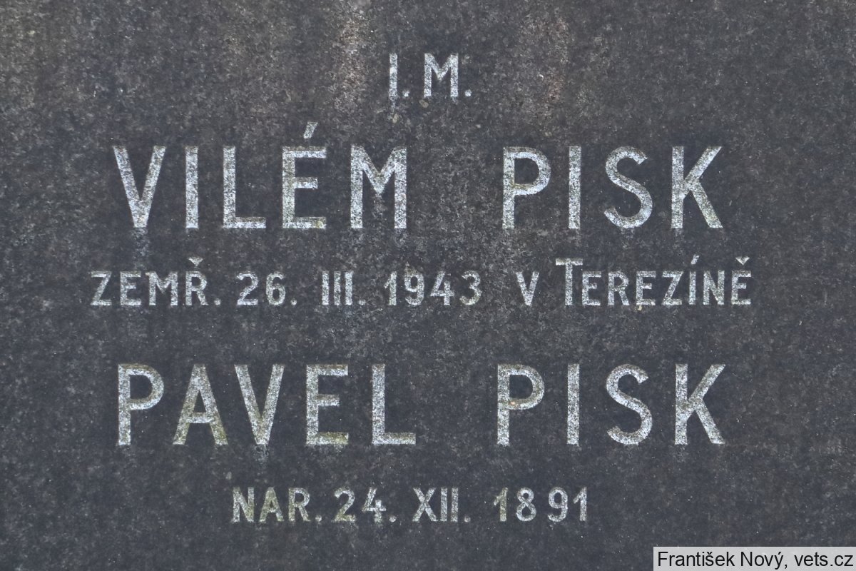 Vilém Pisk, 13.5.1859, Praha XVI,,20,7,1942 deportován do Terezína, tam zahynul 25.2.1943