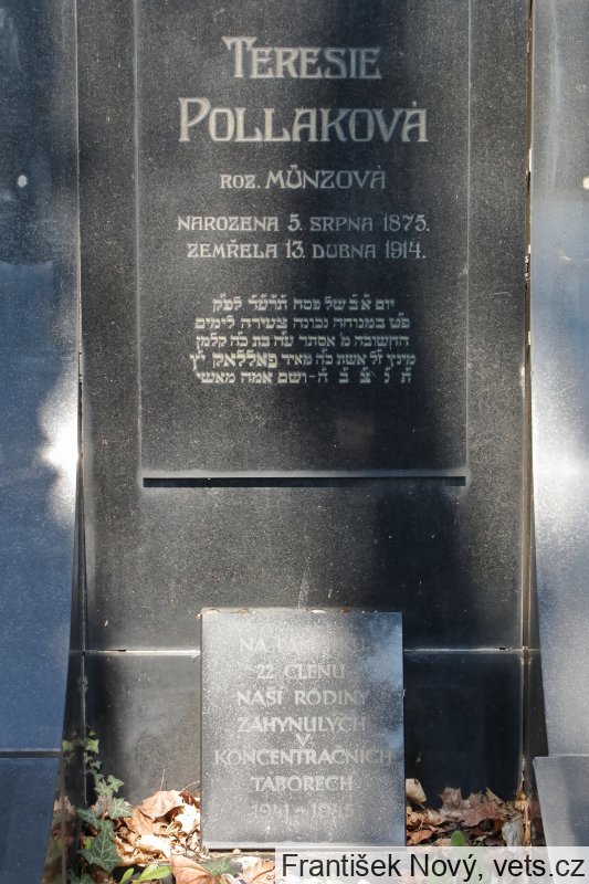 Arnoštka Pollaková, 3.5.1868, Praha XII, 24.4.1942 deportována do Terezína, 22.10.1942 do Treblinky