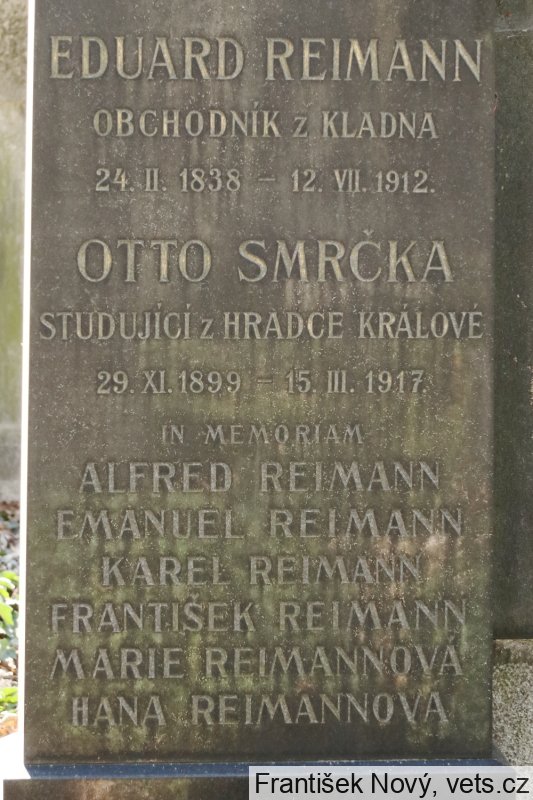 Karel Reimann, 31.12.1879, František Reimann, 20.4.1916 a Marie Reimannová, 19.5.1892, Praha II, 31.10.1941 deportováni do Lodže. František zahynul 14.4.1942