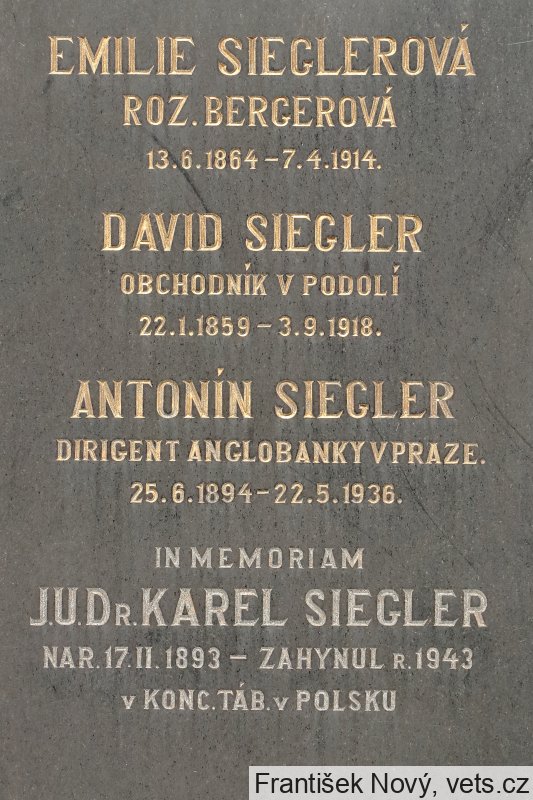 Karel Siegler, 17.2.1893, Praha I, 21.10.1941 deportován do Lodže
