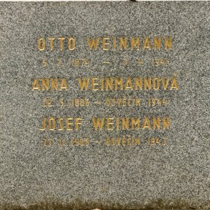 Anna Weinmannová, 29.5.1886, Praha XII, 24.4.1942 deportována do Terezína, 18.12.1943 do Osvětimi