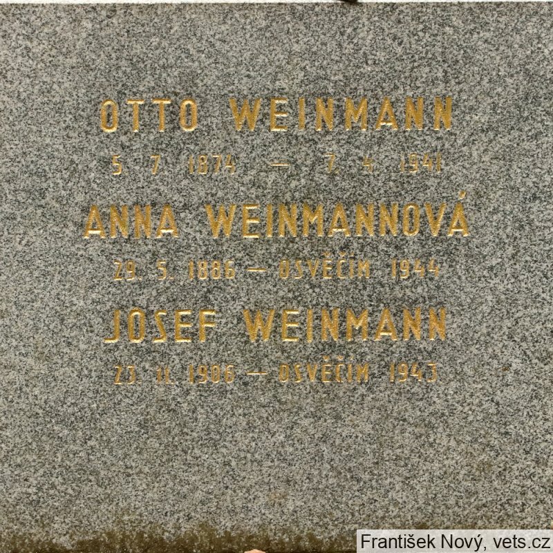 Josef Weinmann, 23.11.1906, Praha XII, 24.4.1942 deportován do Terezína, 26.1.1943 do Osvětimi